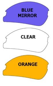 White with Blue Mirrored, Clear, & Orange front lenses.