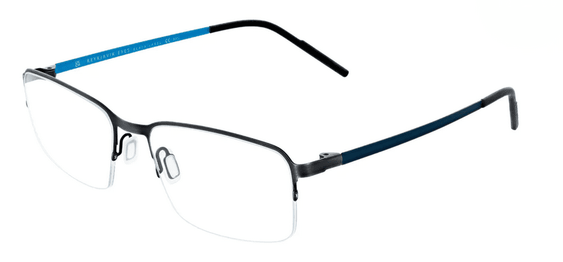 Reykjavik Eyes Glasses Theo a semi rimless gents rectangular shape, in lightweight Titanium.
